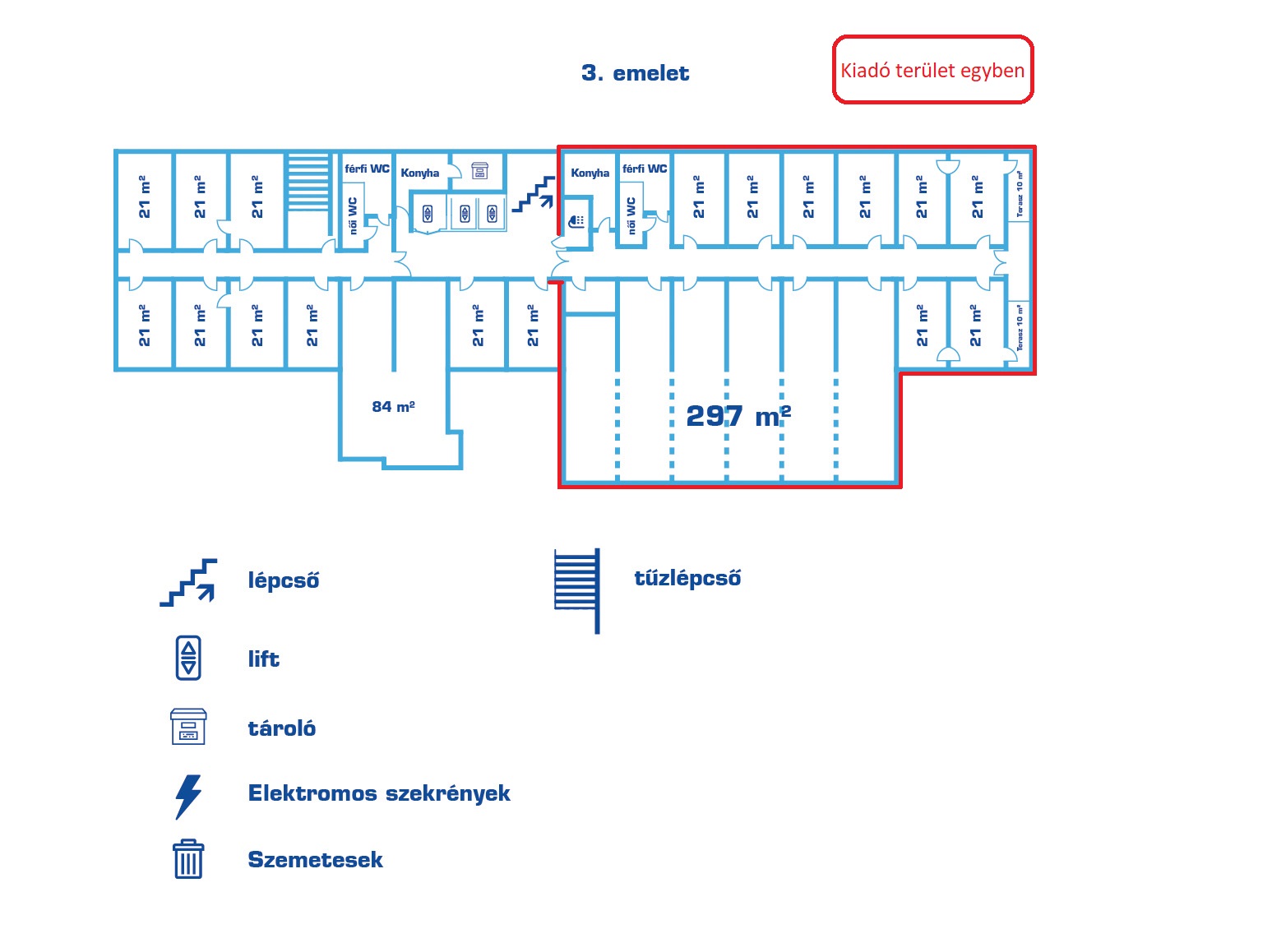 3rd floor: 297 m2 + 5 units (21m2)