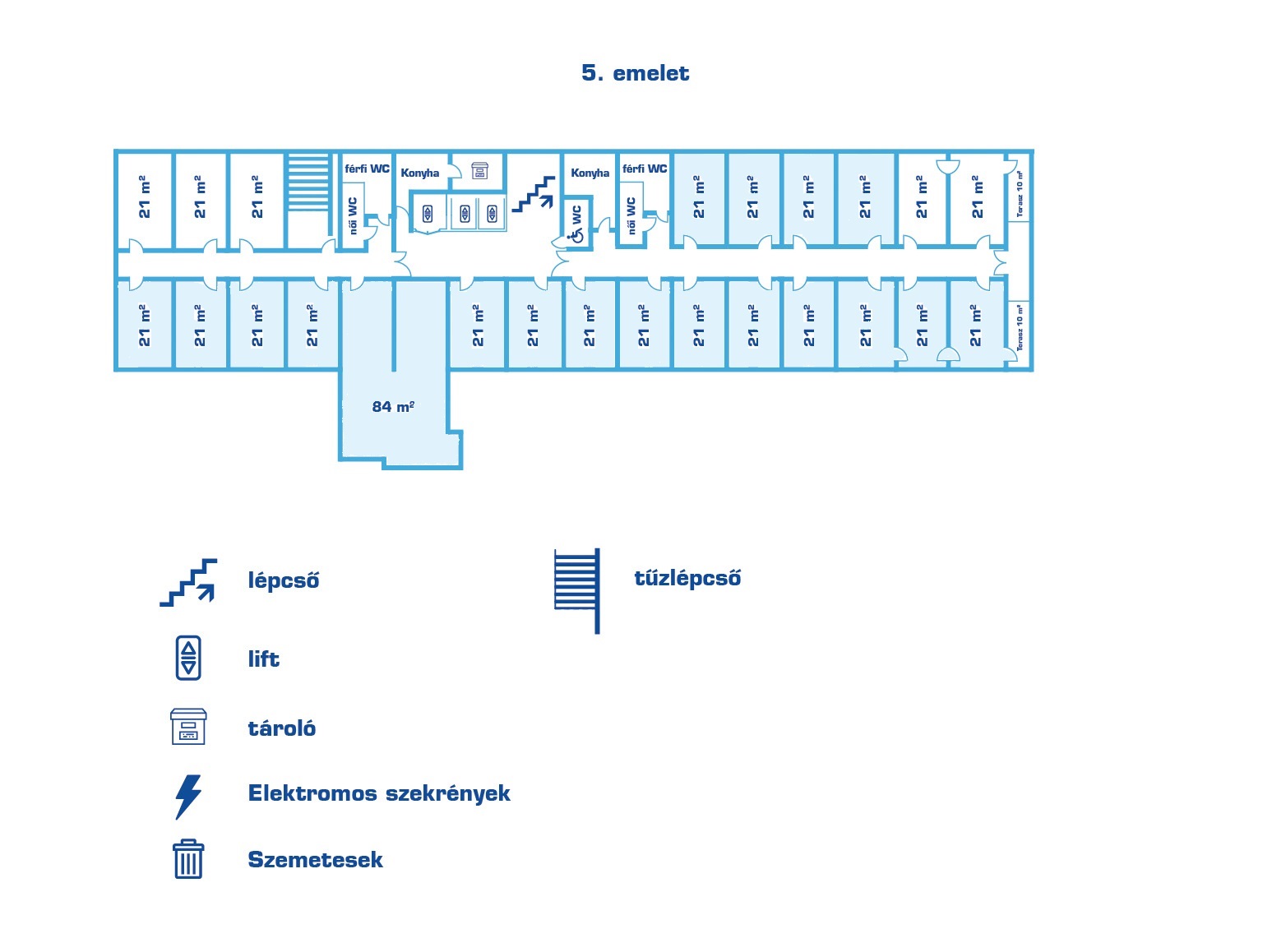 5th floor: 21 m2 (6 units)