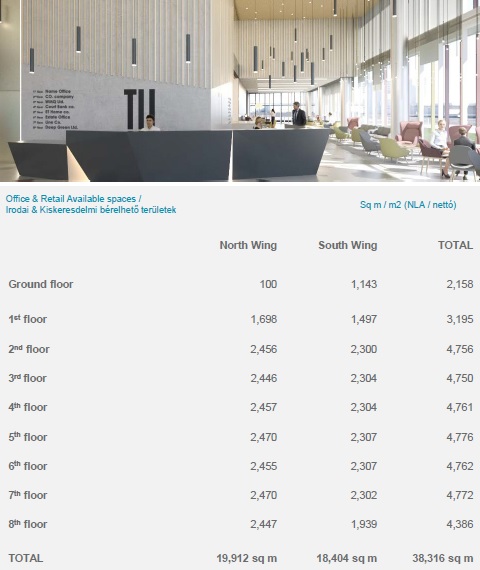 • 4 underground level, ground + 8 office floors GLA of 42 000 sq.m, 682 parking places