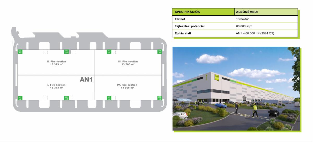 Construction of a 60,000 square metre big box hall on the Alsónémed site will start soon and will be the company's largest building to date. Environmental protection and energy efficiency will be a priority in HelloParks' investments, and like the other developments already underway, the AN1 hall will be built to the highest BREEAM New Construction category Outstanding rating and will meet EU Taxonomy requirements. Construction is expected to be completed in the second quarter of 2024.