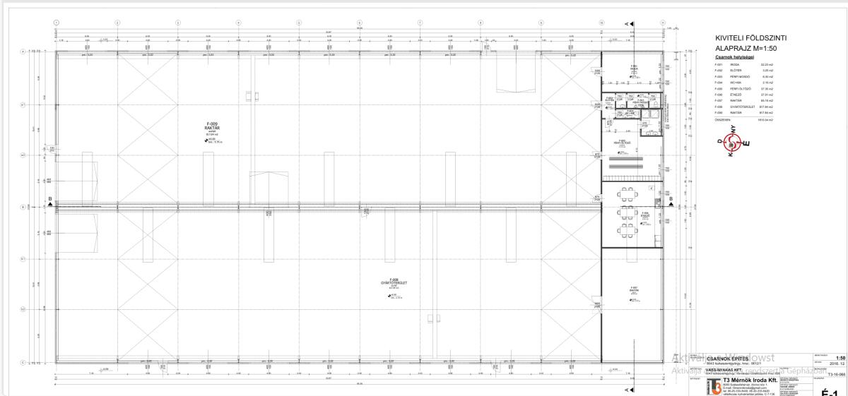 - csarnok alapterület: 1810m2