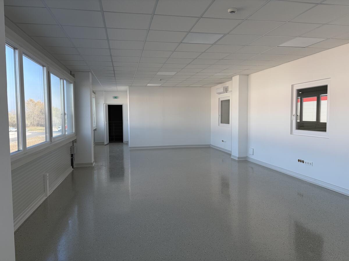 A nagyobb alapterületű csarnokrészben helyezkedik el az emeleti iroda, mely egy konyhából, nagyobb iroda helyiségből, tárgyalóból, és egy mosdóblokkból áll. A csarnokrészhez szintén tartozik egy – a személygépjármű parkolóból megközelíthető – személybejárat, továbbá 4 db szintbeli kapu és 4 db dokkoló. A délnyugati oldalon a homlokzati falhoz kapcsolódva elhelyezkedik 2 mosdó blokk, melyekben 1-1 mosdó előtér és 2-2 wc helyiség található.