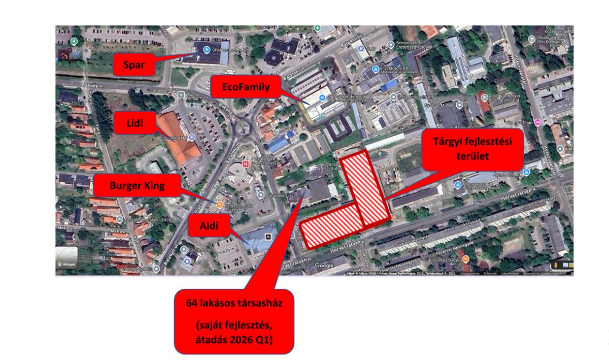 Nagy vásárlóerőt megmozgató helyszín: közvetlen környezetében magas lakóházas övezet, LIDL, ALDI, Burger King, edzőtermek, Ecofamily található.